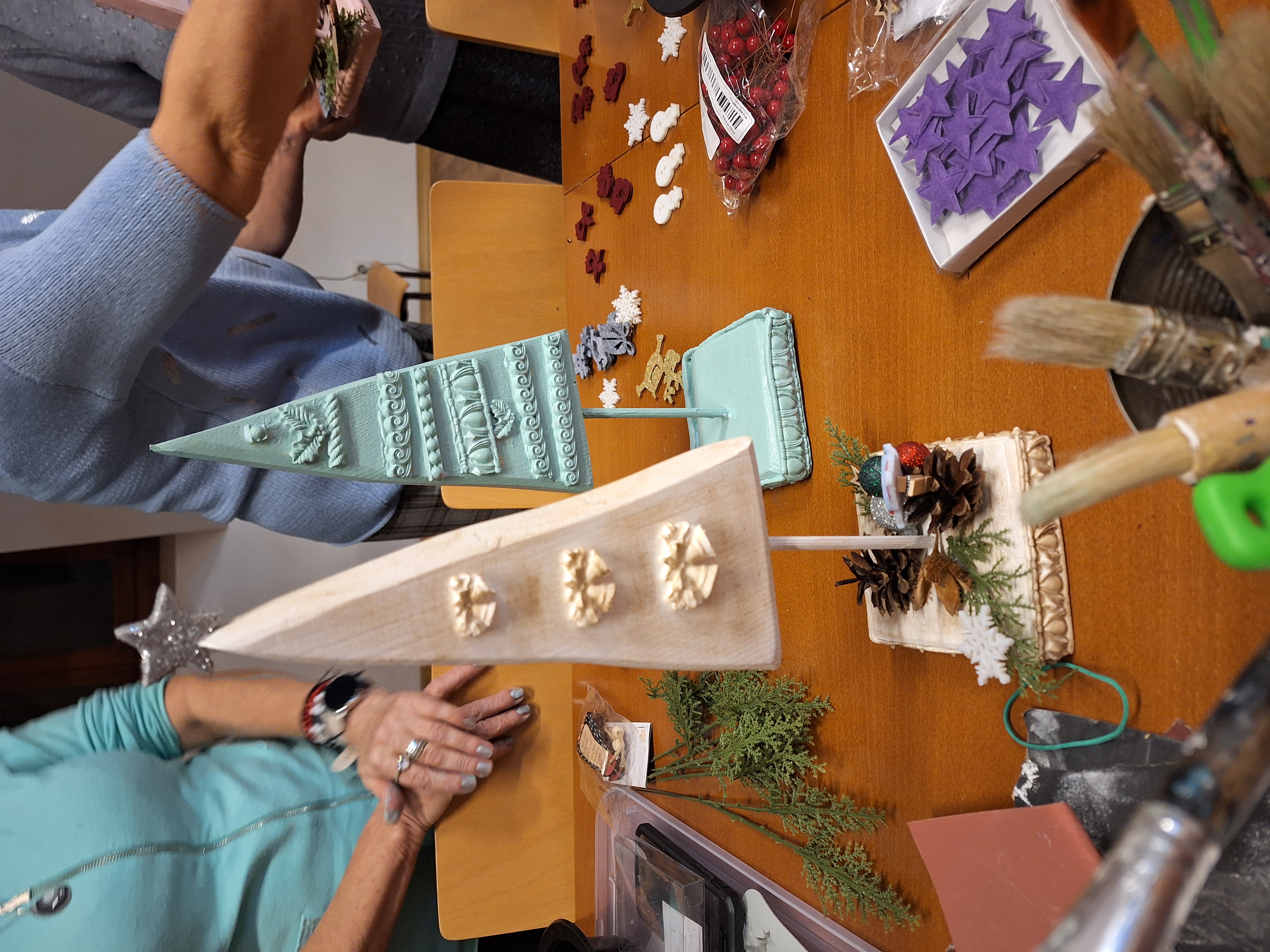W dwóch pierwszych tygodniach grudnia seniorzy 60+ uczestniczyli także w zajęciach manualnych w ramach modułu kreatywnego - zorganizowano zajęcia manualne dla 6 grup. Uczestnicy wykonywali m.in. świąteczne bombki, świece techniką decoupage, drewniane choinki, świąteczne kartki malowane akwarelą a także obrazy metodą decoupage.