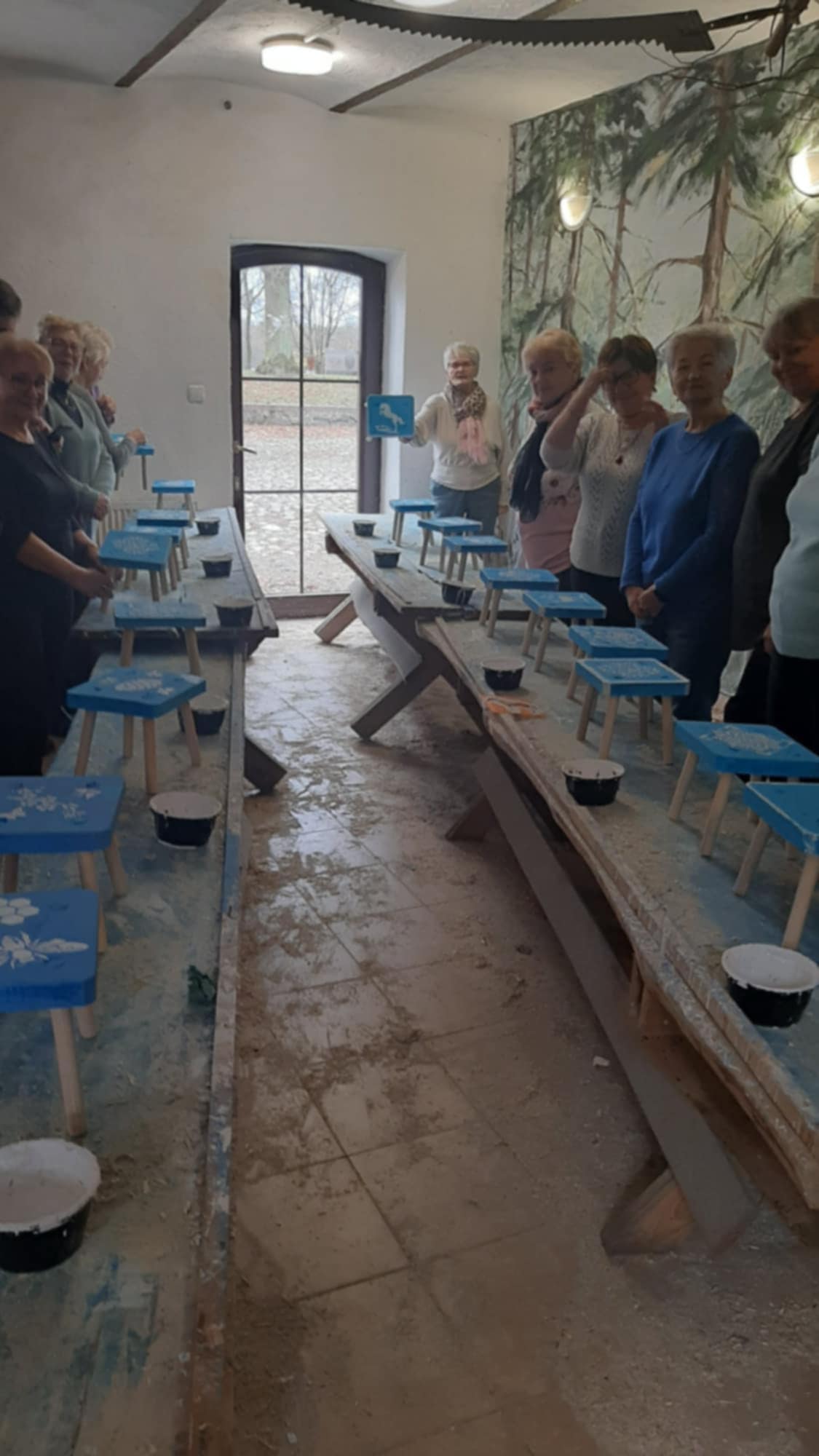 Jednym z kluczowych miejsc zaplanowanych do odwiedzin w ramach projektu, było Centrum Edukacji Regionalnej i Przyrodniczej w Mniszkach. Uczestnicy przeżyli niezwykle chwile, wracając pamięcią do czasów dzieciństwa. Podczas zwiedzania skansenu z przemiłą panią przewodnik, seniorzy mieli okazję zobaczyć urządzenia, narzędzia w warsztacie ginących zawodów: bednarza, kowala, szewca, praczki, pszczelarza oraz innych niezwykłych miejsc z przeszłości- izby szkolnej, sklepu kolonialnego i dawnej kuchni. Zwieńczeniem wycieczki były warsztaty stolarskie - uczestnicy pod okiem specjalisty, wykonali taboreciki, zwane ryczkami. Było sentymentalnie i momentami wzruszająco. Na zakończenie wycieczki, seniorzy skorzystali z posiłku (obiad). Zorganizowano dwa wyjazdy do skansenu dla łącznie 90 osób.