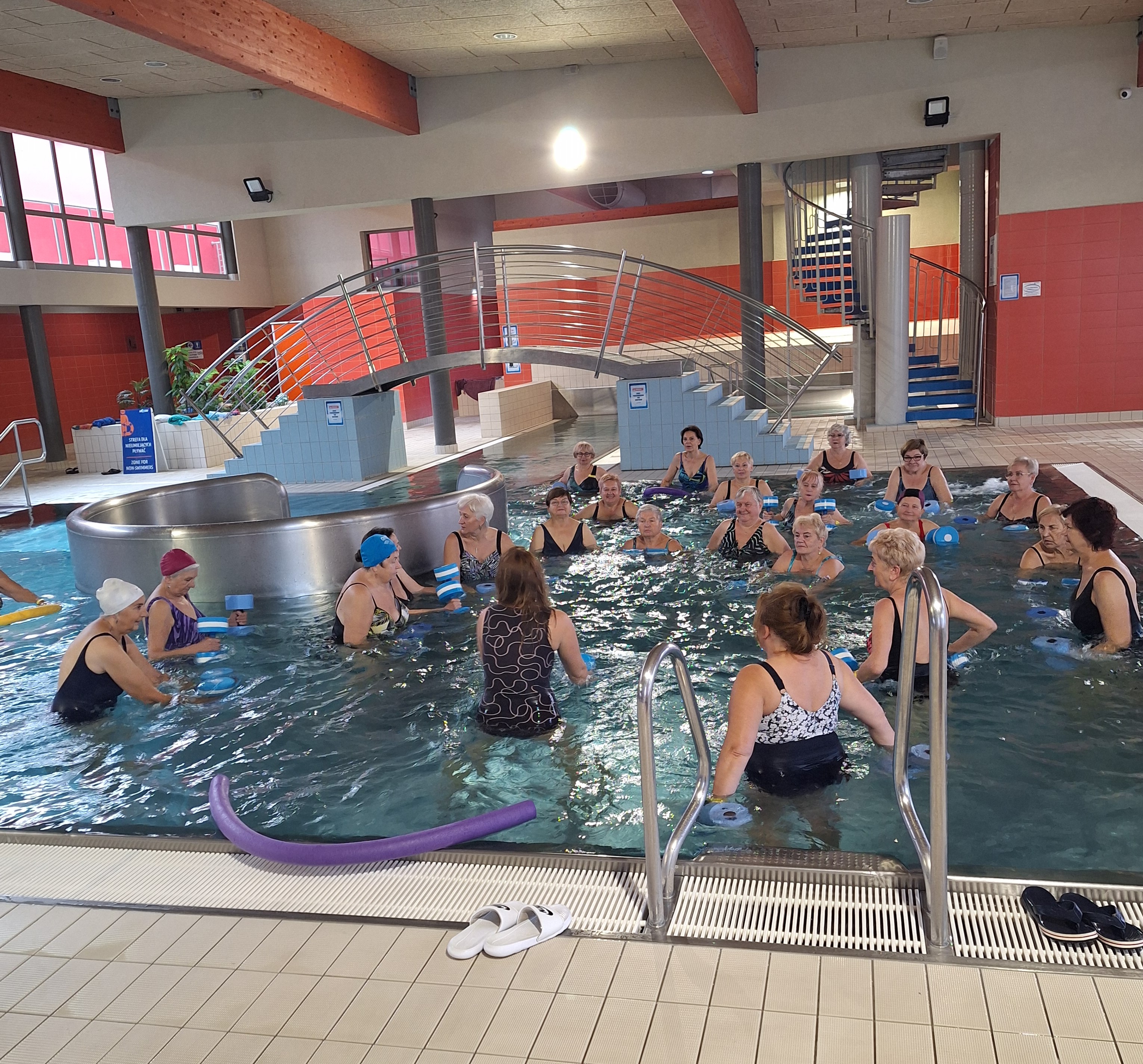 Aby utrzymać to sportowe „zacięcie”, seniorzy uczestniczyli w zajęciach sportowych na basenie w Międzyrzeczu. Była nauka i doskonalenie nauki pływania oraz zajęcia gimnastyczne w wodzie, a także korzystanie z sauny i innych atrakcji wodnych. Po zakończonych zajęciach, na seniorów czekał pyszny posiłek regeneracyjny.